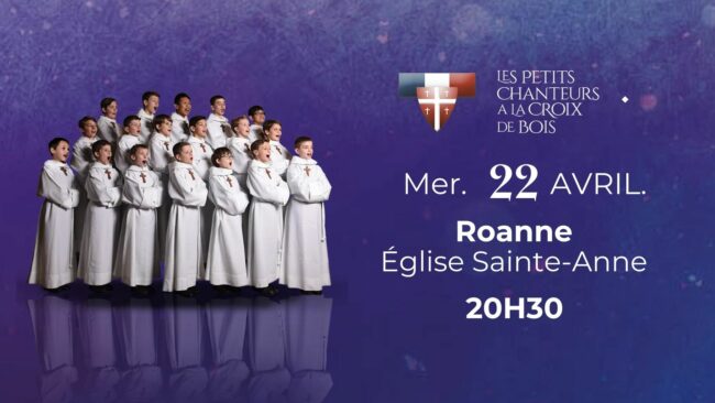 Le chœur des Petits Chanteurs à la Croix de Bois est heureux de vous présenter un concert le 22 avril 2026 à l’Église Sainte-Anne, à Roanne.